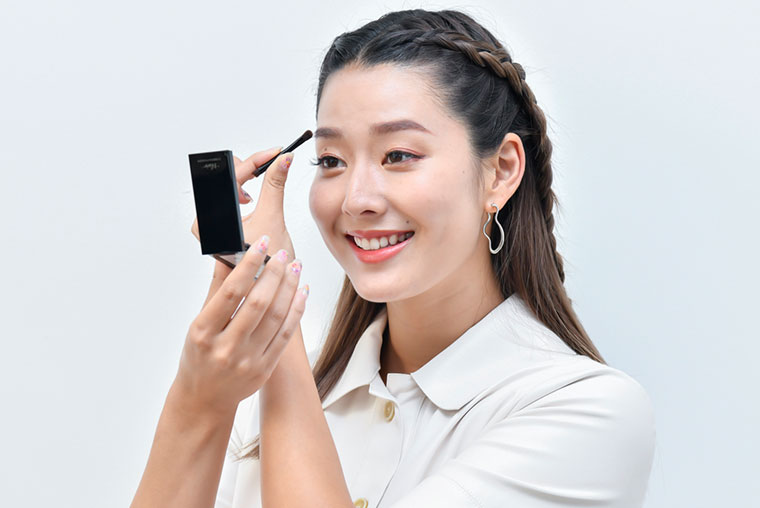 - ああ!! ペンシルじゃなくて、アイシャドーみたいなパウダーで、筆でぼかしながら描いていくタイプね!