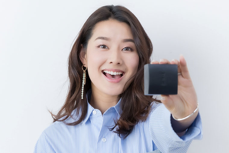 この黒くて四角い石けんのポイントはね、ふんわりやさしい泡が、くすみの原因であるメラニンを含んだ古い角質や、毛穴の皮脂汚れ、ザラつきまでスーッキリ落としてくれるところ!!