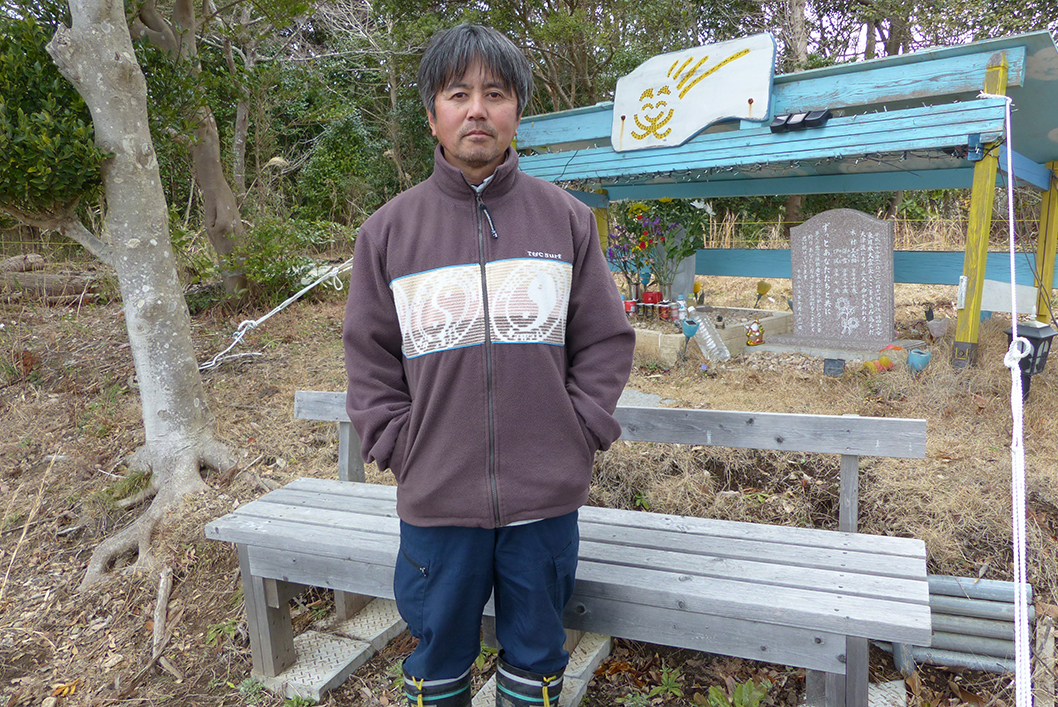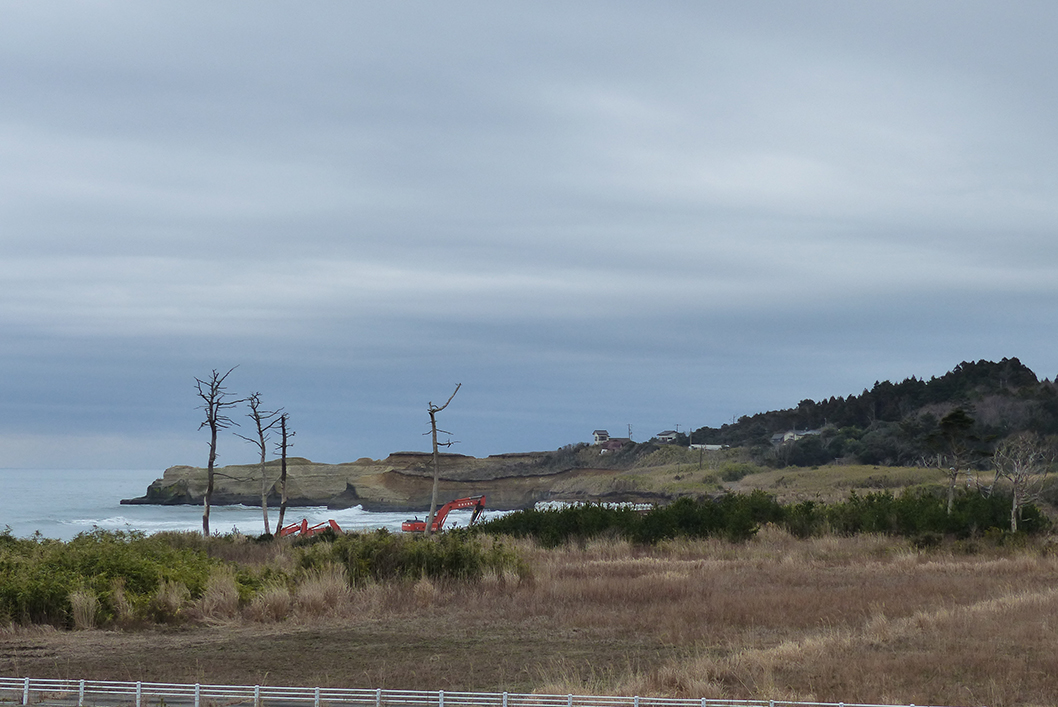 「汐凪は全部は見つかっていないので、このへんの田んぼの捜索ですね。海岸沿いは歩くくらいしか、目視ぐらいしかできないですね。いまはもう防潮堤を作るためにもとあった壊れた防潮堤を撤去しているんですが、もしかするとその体の一部がそこにある可能性もあるし、その可能性があるテトラポットの上に防潮堤を作るということに対して、いまのこの状況の中で異を唱えられるのは俺しかいないような気がするんですよ。9年経つんだから、そういうこともぜひ考えて欲しいなと思って。