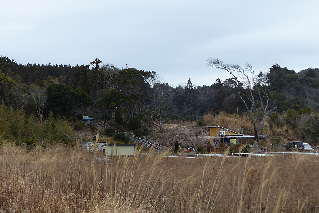 いまも汐凪ちゃんを発見できる可能性のある、大熊町の自宅周辺の土地。木村さんはそこを「汐凪のお墓みたいなもの」と考えています。この場所は、放射性廃棄物の中間貯蔵施設の建設地になっていますが、土地の明け渡しをめぐる問題はいまも続いています。