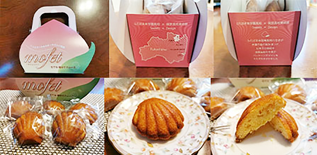ふわっと、桃の香りが口いっぱいに広がる美味しいスイーツでしたが、じつは、そのうちの「マドレーヌ」に、伊達市の「パティスリーアリュメット」によるプロの手が加えられ、「mofet(モフェット)」という名前で商品化、11月28日から、伊達市霊山町の「道の駅伊達の郷『りょうぜん』」で試験販売されます。また12月11日、12日には、福島市にある「コラッセふくしま」の県観光物産館でも販売されるということで、まさに“福島の若者たちが取り組む復興への未来志向アクション”が、次々とカタチになっているんです。