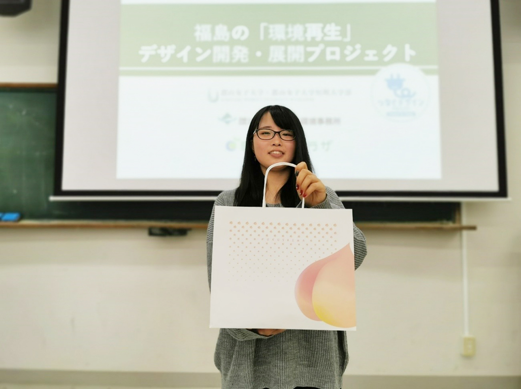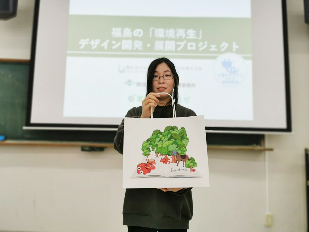 郡山女子大学短期大学部地域創成学科の7人の学生たちが、「福島の再生」をテーマにデザインを考え、これがまずは紙袋という形で完成、先日11月12日にお披露目されました。