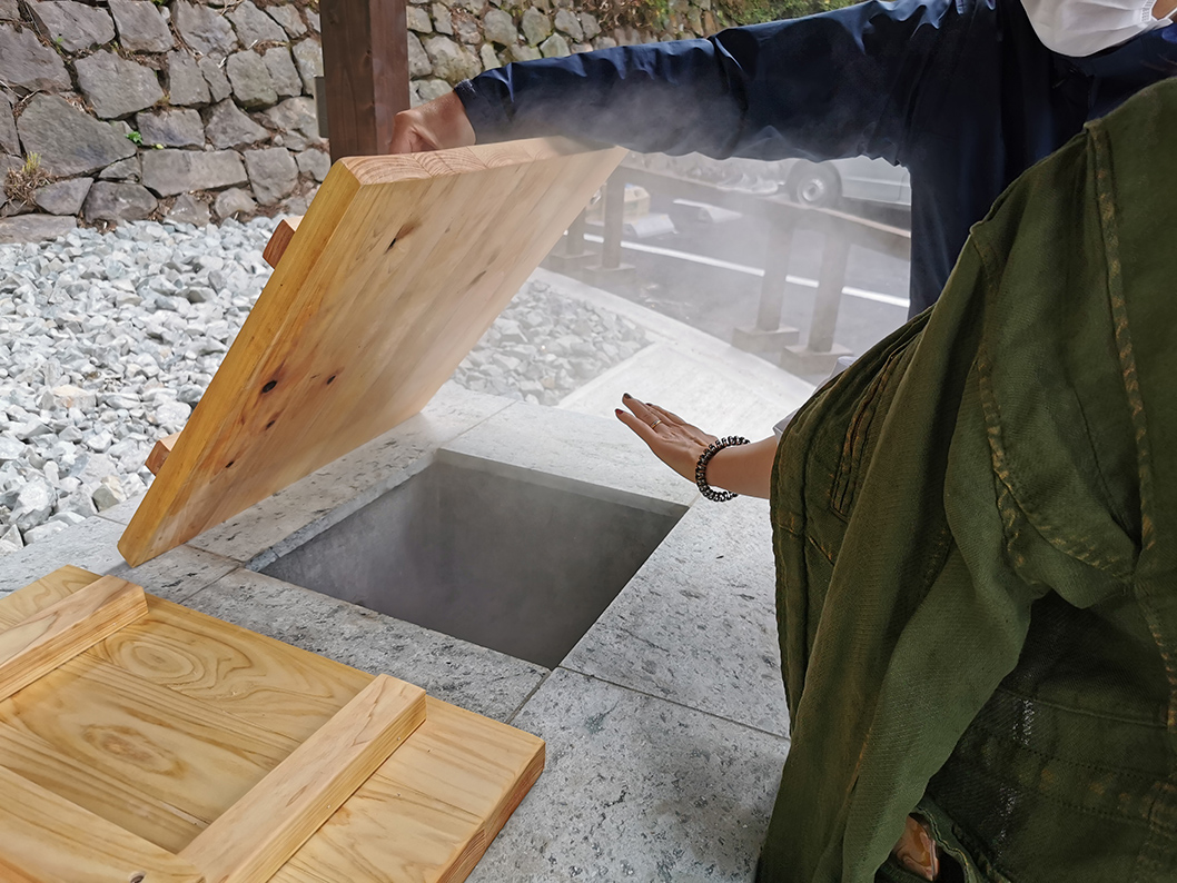 「地熱の蒸気ですね。玄関のところに新たに『蒸窯』を作ったんですが、蒸釜で使うぐらいでは吐ききれなくて意図せず逆噴射が起こってしまっています。それだけ地熱の力が強いですね。」