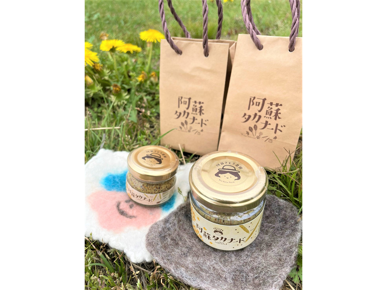 阿蘇といえば、人の手で作られた草原、そして、あか牛をはじめとした牧畜が有名ですが、この阿蘇の素晴らしい風景と暮らしが「ずっと続きますように・・・。」と挑戦を続けるのが、阿蘇さとう農園です。その1つが、阿蘇の伝統野菜「阿蘇高菜」を使ったマスタード、その名も「阿蘇タカナード」。そしてもう1つが、阿蘇のシンボルでもある“草原”を守るためにはじめた、「阿蘇ひつじ」を使った取り組みです。