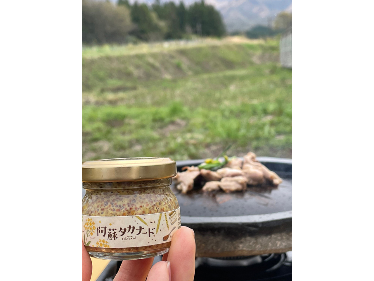 「新規就農1年目に高菜も作付けをしていて、自分で漬物に加工して販売したんですよ。収穫も漬物も作って販売してみて、葉っぱの収穫期がとても短くてその瞬間に取らないといけないことに気づいたんです。それからお漬物を販売すると、だんだん食卓から減っていて、地元で安く販売されていることを知って、これはちょっと農家としては採算が難しいと気づきました。なので私が着目したのがタネなら収穫時期が長いんですよね。手摘みじゃなくて機械でも収穫できることも見込んでいたので、タネを食用に使えれば阿蘇高菜はもっとたくさん栽培して後世に残せるという期待をマスタードを作り始めました。」