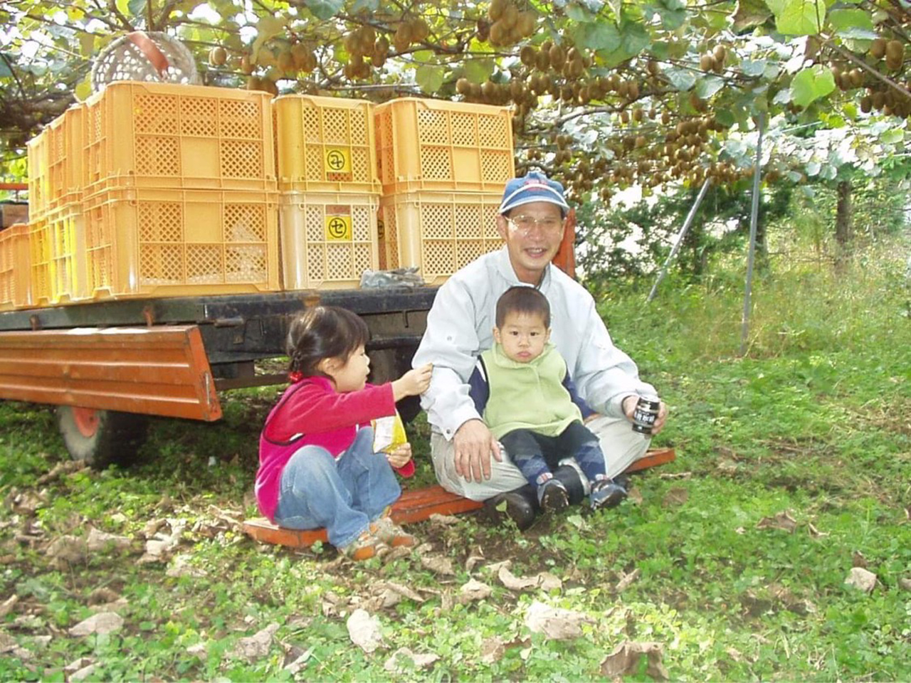 元樹)僕が5代目、祖父が3代目。初代が梨農家をはじめて、祖父の代からキウイを導入。父が代表の時は、梨、キウイ、洋梨もやっていました。父が梨、祖父がキウイ、加工と販売が母と祖母という家族経営だったんですが、こっち(千葉県)に来てからは、父一人で梨とキウイをやっていました。避難してから10年間くらいは祖父は畑に出ていなかったんですが、父が亡くなった年にキウイの収穫を頼まれて何年かぶりに畑に出たので、今はすごく楽しそうにしてますね。