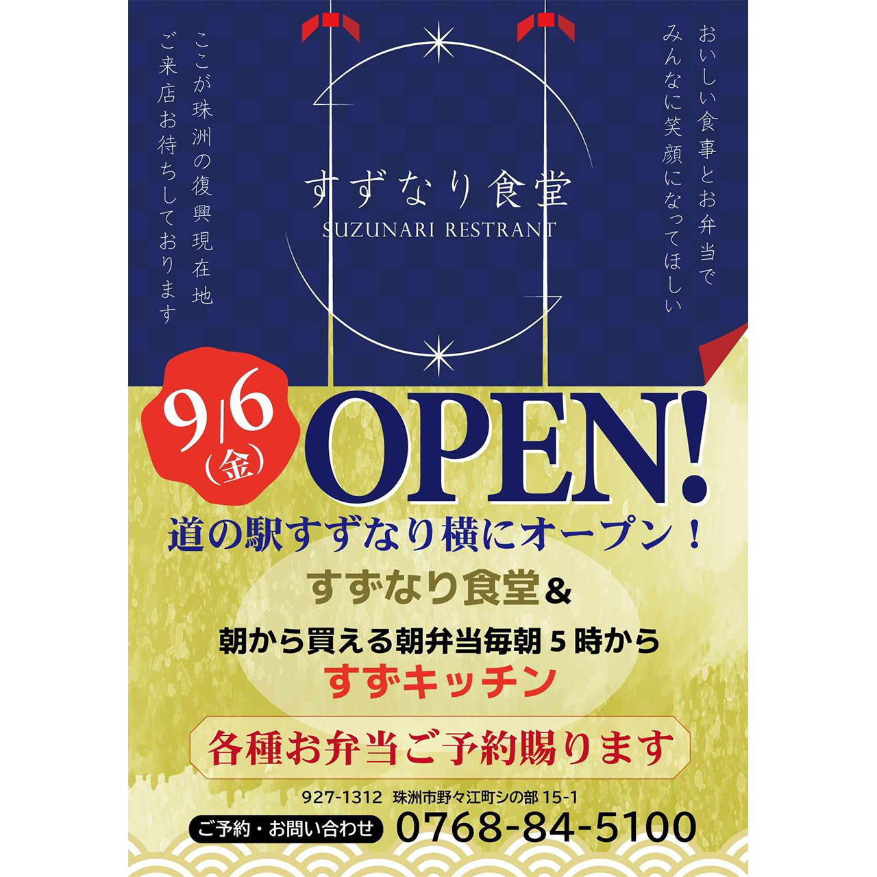 そして珠洲市に帰った信子さんは、いろんな方と協力しあって、珠洲市の「道の駅すずなり」の敷地内に、珠洲市で初めてとなる仮設店舗、「すずなり食堂」を、9月6日金曜日11時にオープンさせます!