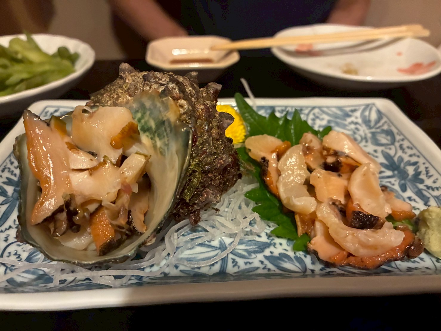 輪島市内で営業する「小料理新駒」は能登の海の幸が手軽な値段で楽しめるお店。地元の醤油で漬けて干した「醤油ハチメ」はほんのりとした醤油の甘さが特徴です。新鮮な刺し盛りはもちろん、夏はサザエ、アワビといった貝類がおすすめ。磯の香りが口いっぱいに広がります。能登の地酒「千枚田」と一緒にどうぞ♪