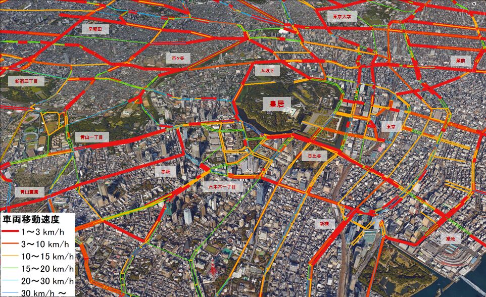 「さらにこのシミュレーションでは、歩道だけでなく車道の状況も計算してみました。東日本大震災の直後、かなりひどい交通渋滞が続いていましたよね。でも、震度6強や7のケースでは、東日本大震災と比べものにならないくらいの大渋滞が長時間起きるんです。」