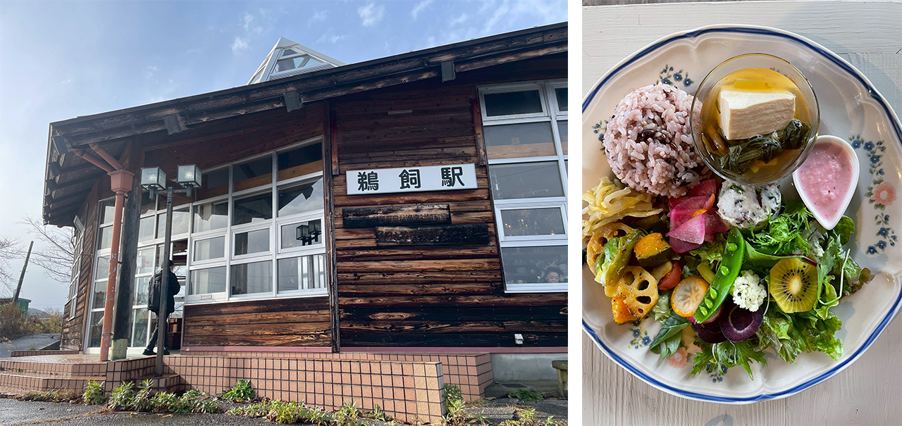 「natural cafe minanto(ミナント)」は、旧鵜飼駅の駅舎にお店を構える小さなカフェ。店内に一歩足を踏み入れると、アンティークな装飾と色とりどりのドライフラワーがあしらわれた心地よい空間が広がります。この日のminantoランチは「玄米甘酒ポークデミ煮込みスープ」「ひじきとシーアスパラガスの里芋ポテサラ」「コールラビと白人参のきんぴら」など約40品目を使用したプレート。食材もオーガニックにこだわっています。震災後一時金沢で営業していましたが、2025年11月にもとの場所でリニューアルオープンしました。営業日やお店の様子は「natural cafe minanto(ミナント)」のインスタグラムでチェックしてください♪
