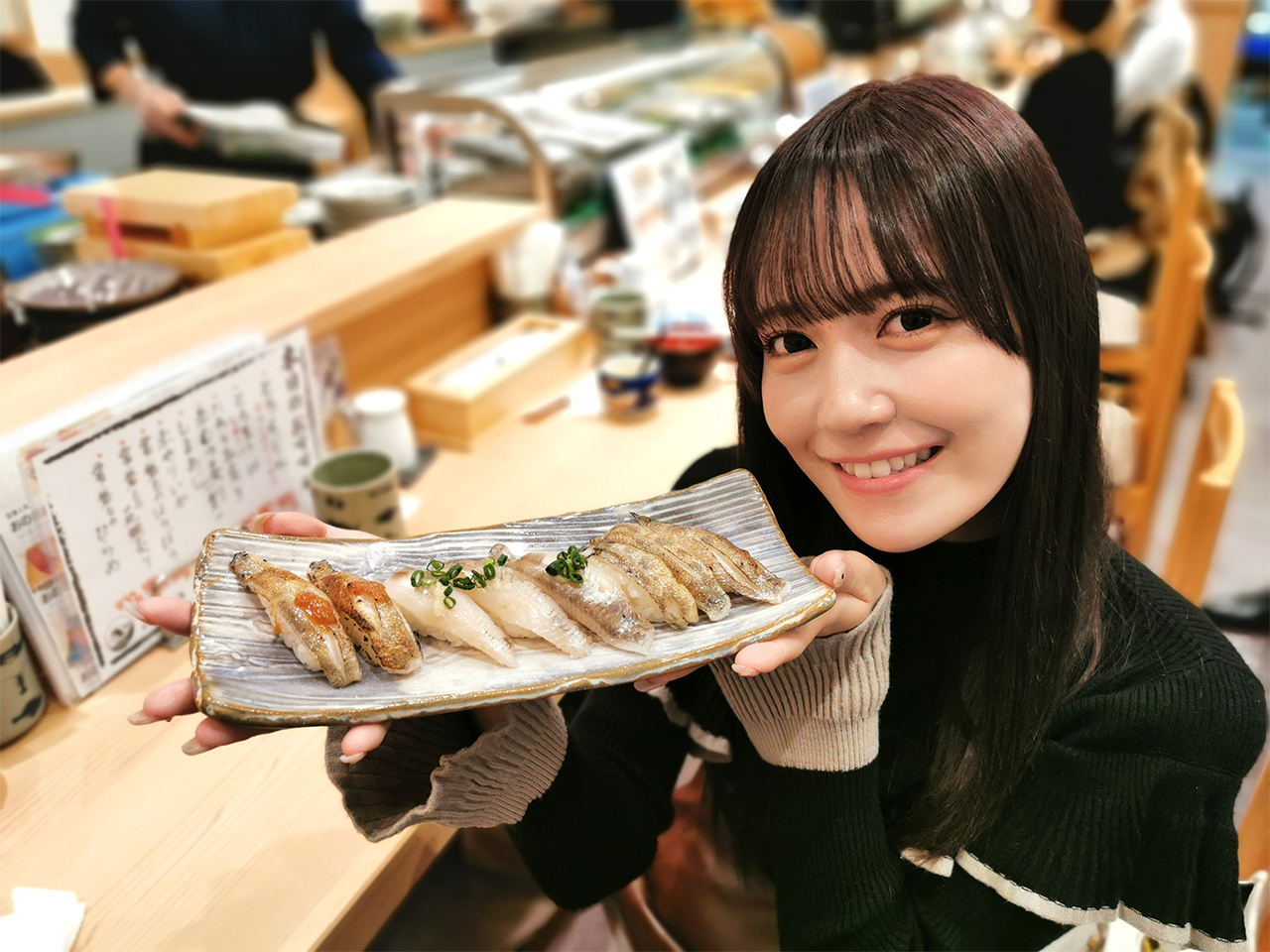 取材のあとは直営のお寿司屋さん「いわき海鮮寿司おのざき いわき駅前ラトブ店」へ。じつは取材前からスタッフもちょくちょく通っていて、常磐ものの新鮮で美味しいネタがいつでも味わえるとっておきのお店なんです。看板メニューの“メヒカリの炙り握り”をはじめ、常磐ものの美味しいところを堪能させて頂きました♪