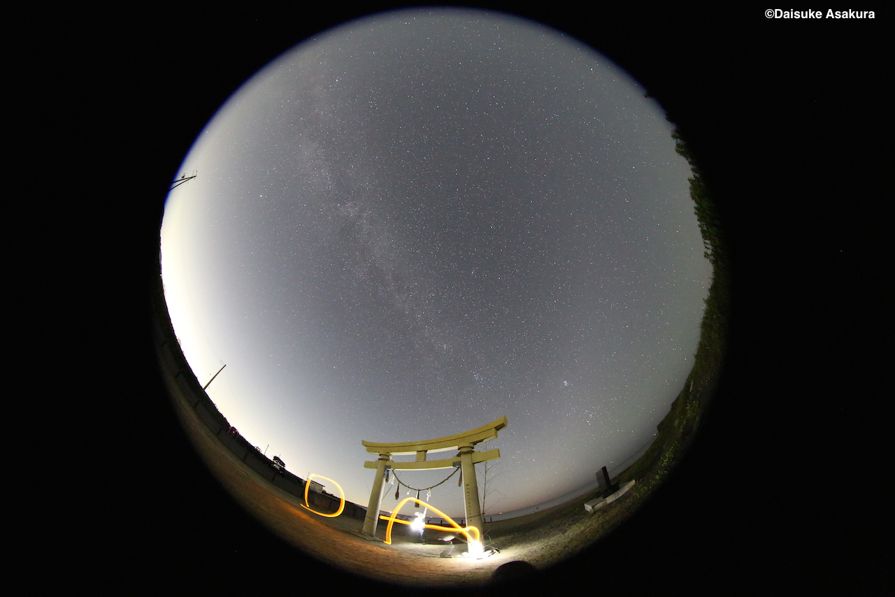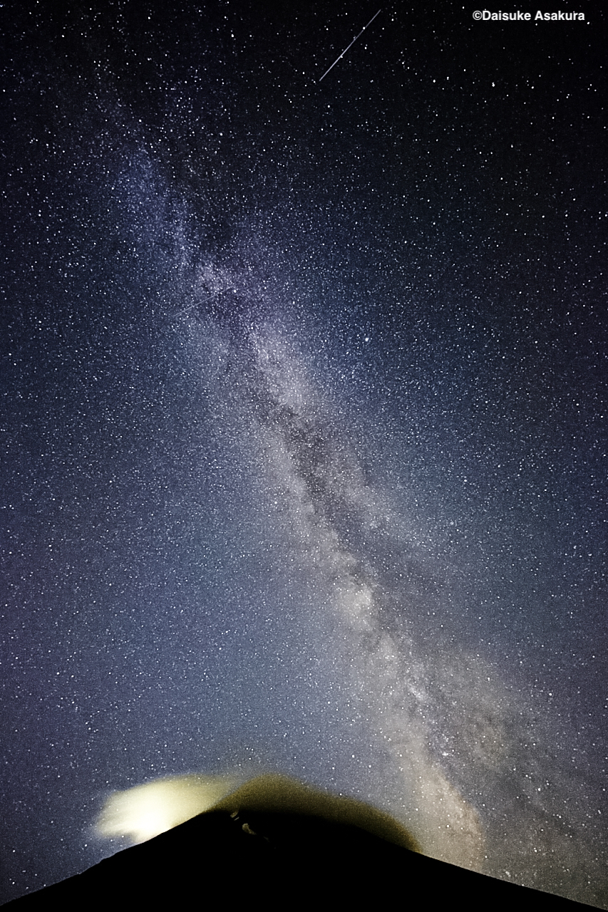 お次はこちら、富士山と天の川のお写真を。撮影した瞬間も「すごいのが撮れた!」と思われたそうですが、浅倉さんとしては現像するソフトなどでコツコツ編集している時、イメージ通りになるとそれもまた楽しいんだとか!撮って・編集して・眺めてと、何度も楽しめる…それが星空撮影の素敵なところなんですね♪ ちなみに富士山の山頂に天の川がちょうど位置するところをとらえることができて、タイミングもよかったそうです☆