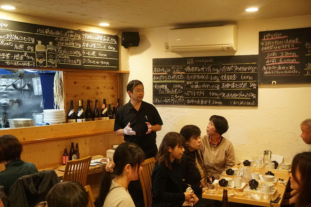 夕食は「伊勢創作ビストロ mirepoix」で、なんと御神楽をあげた後にお下がりとしていただいた食材を使った特別なコース料理をいただきました。鈴木おさむさんも一緒に食事をとり、みんなで楽しいひとときを過ごしました。