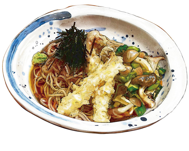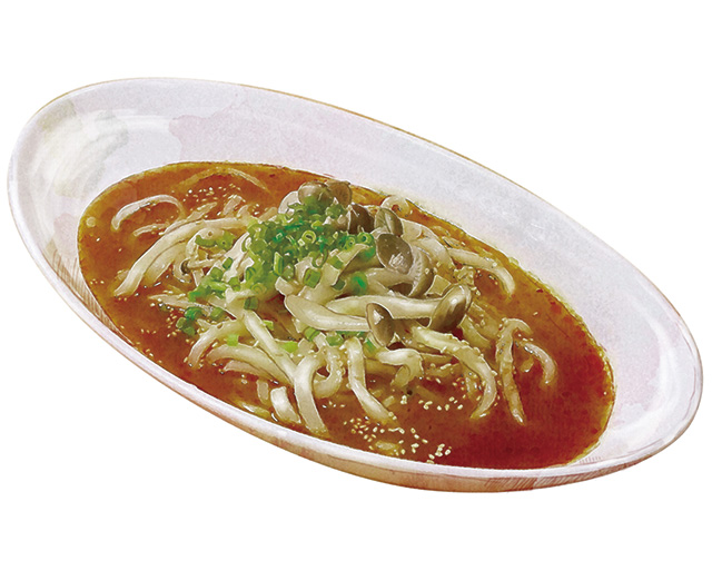 都賀西方PA(下) きのこの冷し旨辛うどん 夏らしいスパイシーな味わいがきのことぴったり!!きのこの食物繊維が腸を整え、リラックス効果◎スパイスの効いたスープで気分もリフレッシュ!¥680(税込)Web都賀西方PA(下)