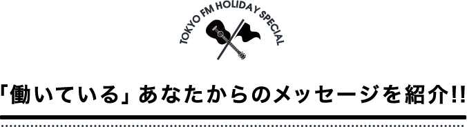 - 「どん底だった時、まだ頑張ろうと思わせてくれた曲」「いつも自分を奮い立たせてくれる曲」…など、あなたが働いている時に自分を助けてくれた曲を教えてください! アーティスト名と曲名、いつどんな時に聞いた曲なのか?そして今働いている人に届けたいメッセージも待ってます!