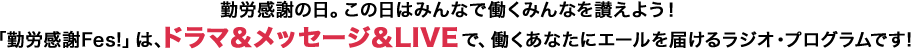 「勤労感謝Fes!」は、ドラマ&メッセージ&LIVEで、