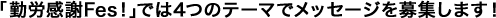 - Twitterでのメッセージは、#パーソル勤労感謝フェスをつけてつぶやいてください。