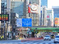 走行しているクルマも付近の横断歩道を渡る歩行者も