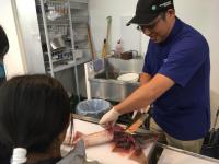 「うみラボ」は、福島県沖で獲れる魚の放射線量を民間の手で測定し公表するプロジェクト。いわき市の水族館「アクアマリンふくしま」と共同で、福島県沖で獲れる魚を来場者の目の前でさばいて放射線量を測定する「調(た)べラボ」というイベンも開催しています。