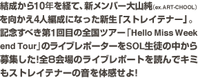 ストレイテナーが四人編成となって初のLIVE TOUR【Hello Miss Weekend Tour】。