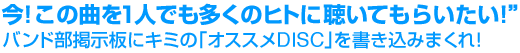 オススメポイント、もしくはなぜこの曲が好きになったかのエピソードなども、あるヒトは是非! アーティスト名と、 曲名は忘れずに書いてくれ! 文化祭WEEKの スクール・オブ・ロック!でオンエアされる可能性アリ! |