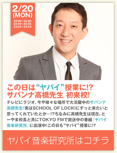 2/20(月)〜2/24(金)SCHOOL OF LOCK! 2017スペシャル授業「ラジオの中の学校、SCHOOL OF LOCK! 入学手続きは一切ナシ! 常に新入生を募集中!」