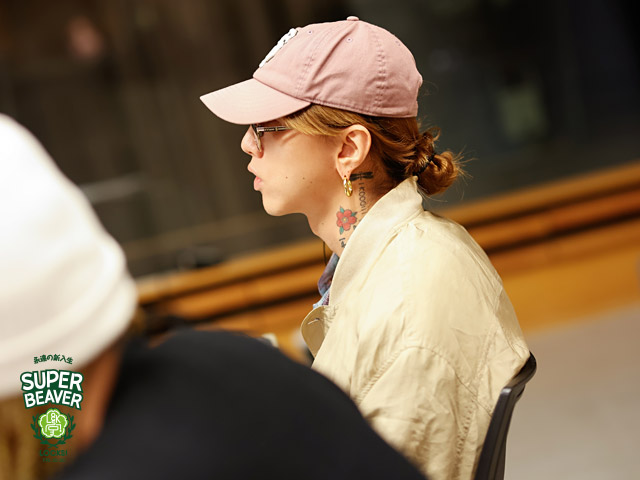 渋谷「でも、我々SUPER BEAVERの中でも、ひたむきに取り組む姿勢であったり、それに向かって頑張るみたいなことで言うと、この2曲っていうのは割とどんぴしゃな楽曲かもしれないよね!時間に制限があったり、頑張るってのはどういうことなんだろうみたいなってのが、かなり分かりやすくそう言われてる楽曲ではあると思うから、もしかしたらそういうとこでうまい具合に俺らがこうケツ叩けた可能性もあるよね!」