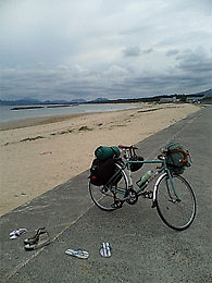 昨日も書き込んだYUI先生の地元ですね。5日目までに距離を稼げたので海でのんびりしてきましたよ〜!新宮の海はきれい!!しかも遠浅になっていたからビーチサンダルを履いてけっこう海に入っていけました!
