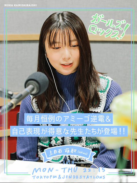それでは、私達とはまた明日!この教室でお会いしましょう〜♪上白石萌歌(adieu)でした♡みんな!明日はランジャタイ先生が来るから楽しみに集まろうね〜バイバ〜イ♪」