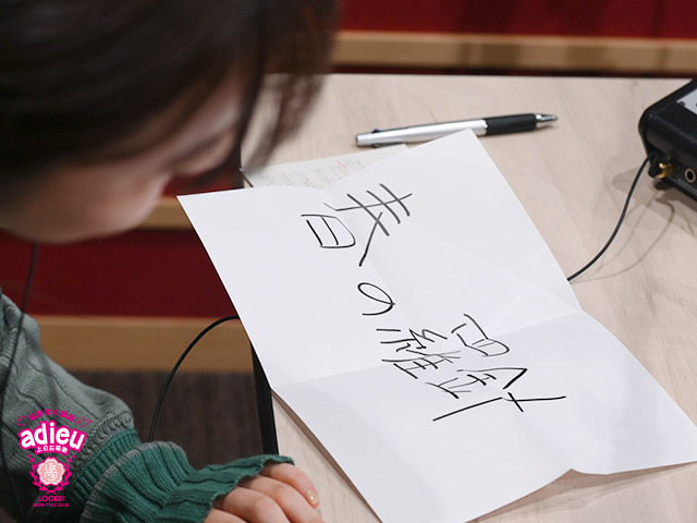 今、私の手元にはadieuの曲のタイトルが書かれた紙が入ってる箱があります。この中から紙を引いて、出た楽曲をモチーフにした短歌を詠んでみようと思います。」