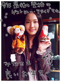 12/15 「鍋クラス・新垣結衣」![]() 「しゃぶ、しゃぶ、しゃぶ...と」 「みなさーん、野菜も食べてくださいねー」 「あっ、コレもういいかな?」 「このお肉、デカい!」 「おいしーーーい♥」 「いい肉ですね!鼻水が出ます!」 突然ですが、この言葉、全てガッキーによるものです。 っていうか、この言葉だけじゃ何の授業してるのかさっぱりわかりません。 っていうかそもそも、ここ、女子クラスじゃありません。 実は今日、ガッキーは女子クラスを抜け出して、しゃぶしゃぶを食べに来ています。 理由は...『教室があまりに寒い』から。『やっぱり冬は鍋だよね!』的発想で。 もちろん校長教頭にもナイショで来ちゃいました。怒ってるかな?怒ってる...よねきっと。 いつもワッショイしてくれてるみこし隊のみんなも怒ってないかな...ゴメンね。 それにしてもガッキー、楽しそうに食べてます。 もともとお鍋は好きみたいで、冬になると毎日のようにお鍋を食べるんだとか。 最近もモツ鍋や鳥つくね鍋、あと友達の家でカレー鍋、そして今日はしゃぶしゃぶと鍋三昧。 ・・・ ・・・・・・ ・・・・・・・・・・ ![]() あ、ゴメンなさい。ガッキー、今、黙々と食べてました。 食べてばっかりもアレなんで、みんなから届いたメッセージも紹介しましょう! といってもお鍋の状態も気になるので、しっかりは紹介できないかもしれませんが (笑) ★山形県・蜜柑ちゃん (13) 初メールです!ダジャレを言います! 木星が屁をした...もーくせぇ。さよなら! ・・・うん、さよなら! ★神奈川県・NEW-Eちゃん (15) ガッキーこんにちは!大好きです! 私は学生で、一般的にみんなが持つようなカバンを使ってるんですけど、何を付けていいのか分からないんですよ。 ガッキーはどんなものを付けたらかわいいと思いますか?簡単でいいので教えて下さい! ・・・私は何もつけなくても逆にいいと思うけど、何か付けたいんだったらディズニーキャラクターとか人気あるんじゃない? しかもデカめのを1コ、ドーンと付けてみるとか。 小さいのをこまごま付けるより、思い切って大きめのをいくのが好みかな。 参考にしてね! ★長野県・たんぽぽくん (18) 雪だ!雪が降ってるーーー!!!!!!!!!!! 長野県の僕が住んでるところでは雪が降ってます。ちょっと嬉しい。 嬉しいけどやっぱり、寒い!寒い!寒いです! ガッキーは雪降ると嬉しいですか? ・・・嬉しいです! ただ寒いよりは雪降っちゃえって思います。沖縄は雪降らないしね。 ★福岡県・漢字クラブくん (14) 最近寒くなりましたね。福岡ももう寒いです。 すっかり冬ですが、ガッキーが思う「もう冬だなあ」って思うのはどんな時ですか? ・・・パーカー1枚が寒くなった時とか、冬のニオイがした時...かなぁ。 でも、冬もいいもんだよ!じゃあ、鍋食べよっかな! M 旅立ちの唄 / Mr.Children 先週の水曜日に来たミスチル先生から、ニューアルバムをもらったガッキー。 もちろん、ガッキーが主演した映画『恋空』の主題歌ですね。 懐かしい!そして鍋、美味しい! さて、ここで生徒のみんなにお知らせしなきゃいけないことがあります。 新垣結衣のGIRLS LOCKS!...明日も、 鍋です。 今日は1回帰って、寝て、起きて、仕事して、また同じ店に来ます。 女子クラスには...行きません!!! (校長教頭、ゴメンなさい!) それではまた明日! あ、ちなみに明日は、今日とは違う鍋食べまーす♥ 12/16 「鍋クラス・新垣結衣 その2」 「しいたけ...と」 「クエ、クエ、クエ!」 「マロニーちゃんも食べたい!」 「あっ!クエちぎれちゃった!!!」 「ネギも欲しいな〜」 ![]() ということで本日のお鍋は、ガッキー人生初となる『クエ鍋』です! 「ということで」と言ってみたものの、何が「ということで」なのかさっぱり分かりませんが、生徒のみなさんは『クエ鍋』って知ってるでしょうか? 【クエ鍋とは?】 土佐を代表する名物鍋。 食通をもうならせる冬の鍋の王者と呼ばれ、専門の漁師でさえ月に何本もとれない幻の高級魚。 大きくブツ切りにした切り身は熱を加えると身がギュッと締まり、脂のノリ具合とのバランスは他の魚では例えようのない旨さ。 漢字で書くと『九絵』。 ひとしきりクエ鍋の説明が終わったところで、ガッキーのお腹も落ち着いてきたご様子。 この辺でちょっとお鍋は休憩して、ガッキーの今年1年を振り返ってみようと思います。 ちょうど1年前の12月は、武道館で歌手デビュー記念のイベントをやりましたねー。 2007年12月21日。SCHOOL OF LOCK!と新垣結衣のheavenly Xmas in 日本武道館! あの時はたくさんの生徒が来てくれて嬉しかったなー。 そして年が明けて、2008年は2枚のシングルをリリース。 『赤い糸』では我が校と『TEAM赤い糸』を立ち上げたりもしました。 夏にはギターを購入し、途中けっこうサボり気味だったものの、最近また練習を始め、Fの音がけっこうキレイに出るようになったそうです。 練習ではCocco先生やYUI先生の曲をよく弾くらしいけど、聴いてみたいよね!!! これはいつか女子クラスで披露する