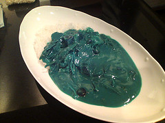 ・・・わわわ!!! 青い!!!! 青っていうか緑っていうかなんていうか...気持ち悪い (笑) どうやって作るんだろうコレ...着色料? なんかちょっと実物を見てみたい!!! ![]() と、ガッキー大興奮 (笑) どこでどうやったら手に入るかとか、続報をお待ちしてます!
