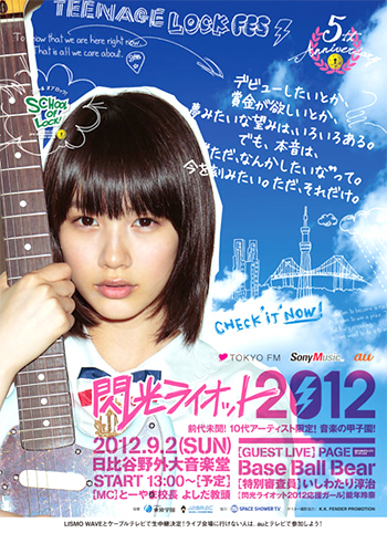 7/23 「19歳の誕生日」 ![]() 今月は入学以来初めてゆ〜っくりと歩いて登校!! 4週目ガールズ能年玲奈ちゃん!!! でも廊下を歩いていると、すれ違う人に「おめでとう!」と言われたりして、一体何の事やらわからずにいると... 「なんだかぽかんとした顔をしている能年玲奈さん!能年玲奈さん!急いで女子クラスに向かってください!」 ![]() ...と、校内放送で呼び出しをされっちゃったのでダッシュで教室に!!! 結局今月も走ってます (笑) そしてガラガラッと教室のドアを開けると...女子クラス中にハッピーバースデーソングが鳴り響いておりま〜す♪♪♪ ![]() そーです!! 玲奈ちゃん、今月の13日にめでたく19歳の誕生日を迎えましたーーーーー!!!! 生徒のみなさん、ガールズ掲示板にもたっくさんのお祝いカキコミありがとうございました! 玲奈ちゃん、嬉しすぎて顔がニヤけっぱなしでございます!! ホントにありがとう!!! ちなみに誕生日当日は、ドラマ『サマーレスキュー』の撮影のため、山にいたという玲奈ちゃん! ドラマスタッフに誕生日ケーキを用意してもらったり、パステルをプレゼントにもらったりしたそーです。 さらには家族や友達からもメールをたくさんもらったみたいで、素敵な誕生日を過ごしたそうなんですが、今夜のSCHOOL OF LOCK!も負けてられません!!! 「玲奈ちゃんのために、最高の誕生日ケーキを用意する!!!」という目標を掲げ、この1ヶ月、様々な準備をして参りました!!! その努力の結晶を、玲奈ちゃんに内緒で!! サプライズでプレゼントさせてもらいました!!! その画像が、コチラ!!! ![]() 玲奈ちゃんが大好きな『地獄のミサワ』さんの『惚れさせ男子』的バースデーケーキです!!!!! もちろん「惚れさせ男子的名言」も書かれています (笑) 『誕生日?俺には関係ないかな。毎日が特別だから...』 ![]() あ、念のために言っておきますが、これ、地獄のミサワさんに書いてもらったわけではありません! 絵の上手な街のケーキ屋さんに作って頂きました!作成の際、イラストの使用を地獄のミサワさんにも許可をいただき、ミサワさん、ホントにありがとうございます! では、玲奈ちゃんが嬉しさで「バタン!!」と倒れないうちに、今夜の授業にいきましょう!今夜のテーマはこれ! 『能年玲奈が、二十歳までにやっておきたいいくつかのこと。』 ![]() 19歳。10代最後の年。大人のような、子供のような、そんな年です。 そんな19歳の1年を、玲奈ちゃんはどんな風に過ごしたいと思っているのか。 20歳までにやっておきたいことは何なのか。話してもらおうと思います。 では、ひとつめ。『制服をたくさん着る!』 ![]() 高校生活であまり制服を着る機会がなかったという玲奈ちゃん。(服装が自由な学校だったそうです) そのため、なんとなーく制服に心残りがあるそうです。だから、ハタチになる前に、お仕事で制服を着れる機会がたくさんあるといいなぁ...と思っています! つづいて、ふたつめ。『たくさん絵を描く!』 ![]() 10代ってすごく素敵だなぁ、と思うので、最後の1年はたくさん絵を描いて、ハタチになったら見返して、当時考えてたことを振り返る機会にできるようにしたい、とのこと! 最後に、もうひとつ。『たくさん青春する!』 ![]() 10代という素敵な、一番キラキラした時に、もっともっとたくさん無駄なこと、素敵なことをして、思いっきり青春したいと思います!!! M インフレションII / フレネシ 今日は誕生日ということで、100%玲奈ちゃんの好みで、大好きな曲を選んじゃいました! フレネシ、ホントに素敵なので、気になる生徒はぜひともチェックしてみてね! さあ、今夜は玲奈ちゃんのバースデーパーティーみたいな授業になっちゃいましたが、最後は玲奈ちゃんから19歳の抱負を一言! 「今はすごく10代が一番素敵な年だと思えるので、がんばってながーく引き延ばして、ながーいながーい1年にしたいと思います!!!」 ![]() 玲奈ちゃん、19歳の誕生日ホントにおめでとう!!!!! それじゃ、また明日♪ 7/24 「閃光ライオット2012 応援ガール就任」 ![]() 今夜の生放送教室でいきなり発表がありましたが、能年玲奈ちゃん、閃光ライオット2012の応援ガールに就任致しましたー!!!!!!! ![]() 我が校の生徒なら、閃光ライオットについて知らない人はいないかとは思いますが、【閃光ライオット】は10代限定夏のロックフェス! 今年でなんと5年目を迎えるまでに成長しました!!! その閃光ライオットの応援ガールに就任させて頂いたということで、玲奈ちゃんはテンション上がりっぱなしなんですが、そもそも玲奈ちゃんは中学時代にバンドを組んでいたりとか、音楽が大好き!! まさに今年の応援ガールに相応しい女の子です! あ、ちなみに玲奈ちゃん、応援ガールのポスター撮影を先月、こっそりと行なっておりました! そしてついにそのポスターが完成したということで、みなさんにぜひ見て頂きたいと思っております! ![]() そういえば昨日は閃光ライオット2012第3次LIVE審査東京会場が終了しましたが、東京会場に出場した10組のみ