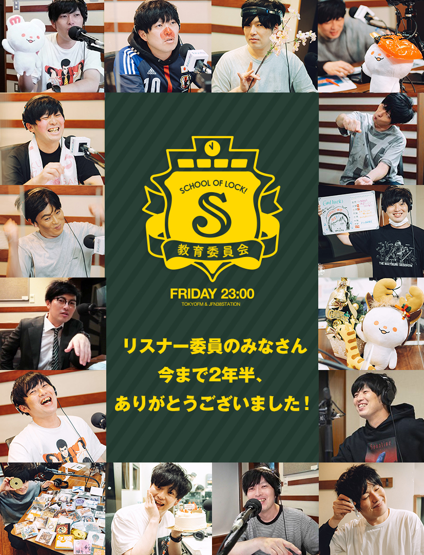 とーやま委員「え〜とですね、まあ、『SCHOOL OF LOCK! 教育委員会』ということで、いろんなことについて話し合うという場として発足したのが2年半前。『教育とは何か?』、“『結婚とは何か?』、『TUBEとは何か?』、TUBEは、あの前田亘輝さんのTUBEね。はい。え〜、そういう回もありました。1時間。『仕事とお金の関係』とかね。『恋の多様性』の話もあったね。『選挙と政治について』という話もありました。『なぜ、リスナーは、“とーやま委員、毎週聴いています”と嘘をつくのか?』。これね、ずっと引きずる議題です。決着がついておりません。継続中です。まあ、いろいろね、いろんなテーマを扱って来たわけですけども、今夜の議題は『ラジオ』です。聴いてるみなさん。“あなたがラジオに求めてるものは、一体、何なのか?”、“どのような存在なのか?”、“ラジオはどのようなものであって欲しいのか?”、それをちょっと一緒に考えていきたいなと思っております。もしもし!」