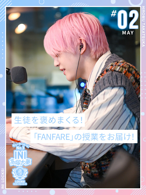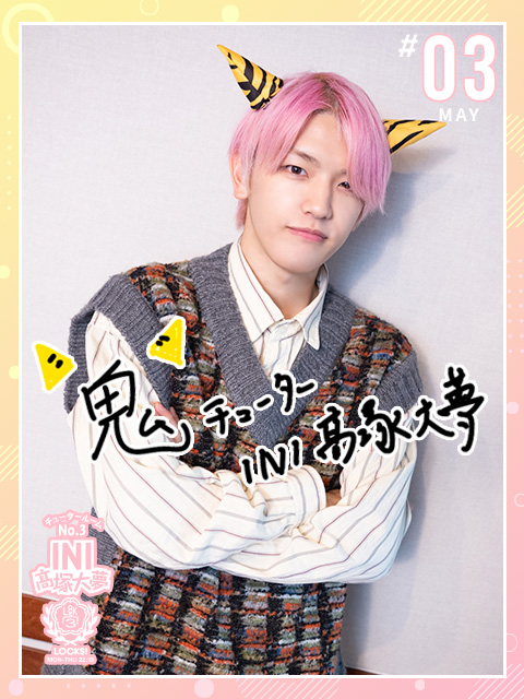 大夢「生徒の皆さん、こんばんは!みんなの夢をサポートする、SCHOOL OF LOCK!のチューター・INI髙塚大夢です!今月もここ“チュータールームNo.3”から授業を届けていきます!私事ですが、今月11月3日でデビュー3年目に(ちょっと甘噛みで)突入しましたー!!\(おもちゃのラッパの音)プププー!/」