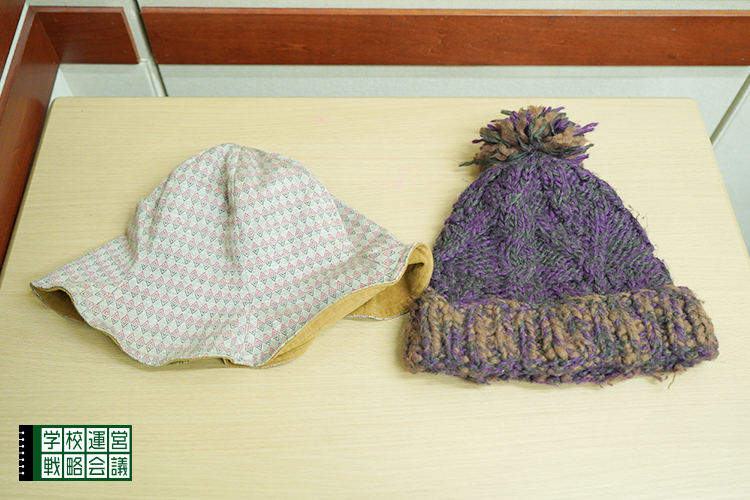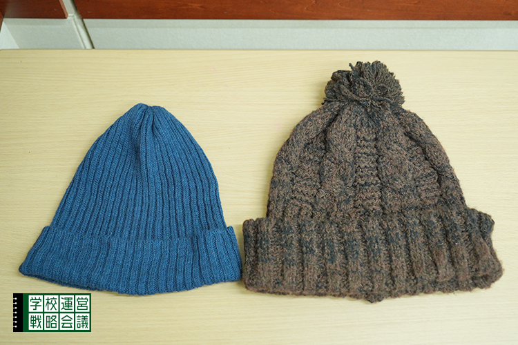 とーやま校長「これも帽子セット! 茶色いニットキャップと群青色のニットキャップ!」