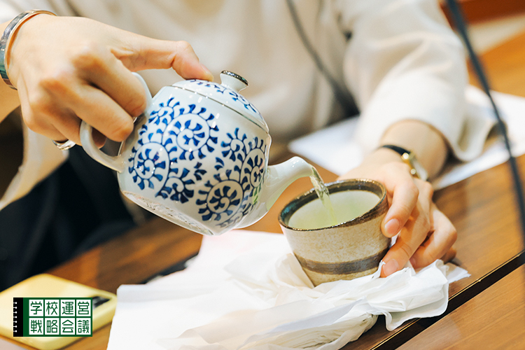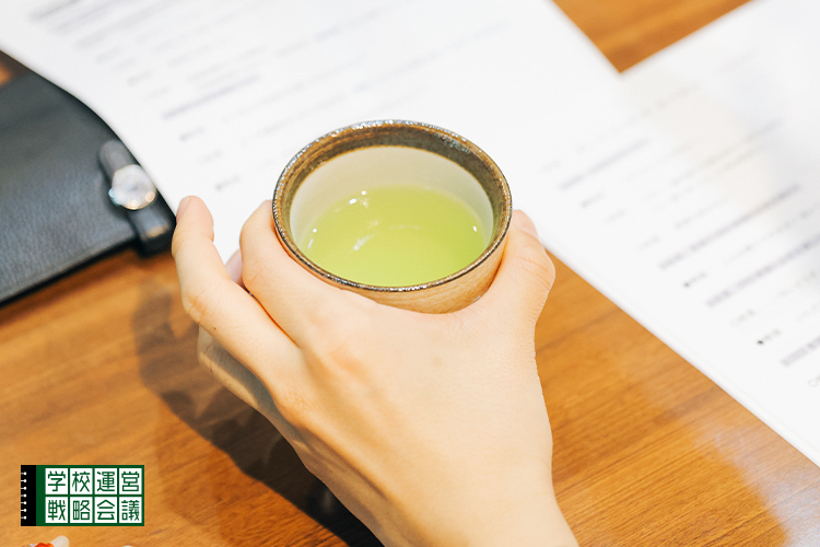 こもり校長「見て〜。めっちゃええ色してるわぁ。香りもめちゃめちゃええし…(お茶をすすって)美味しいわぁ」