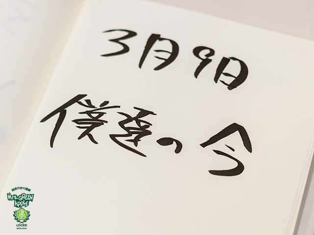 ミセス先生こんばんは〜!!単行本を読ませていただいたのですが、ミセス先生のドキュメンタりー映画「THE ORIGIN」の記憶を呼び覚ましながら読むことで、より「Mrs. GREEN APPLE」を少し知れた気持ちになりました。私にとってミセス先生の楽曲は「衣、食、住、ミセス」くらいの存在なので、こうしてまた知ることができるのが何より幸せです。新曲「風と町」も楽しみにしています!!