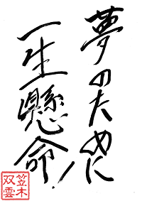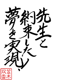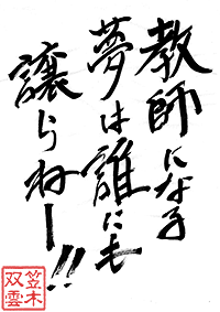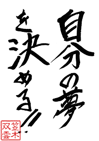 ![]() 夢は書家 山口県 15歳 男 夢は絶対かなえる。自分で決めた道だから。 |