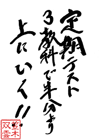 ![]() ゴールデン嵐ボンバー 大分県 13歳 女 今度こそ、テストで60番以内とってやるぞ! |