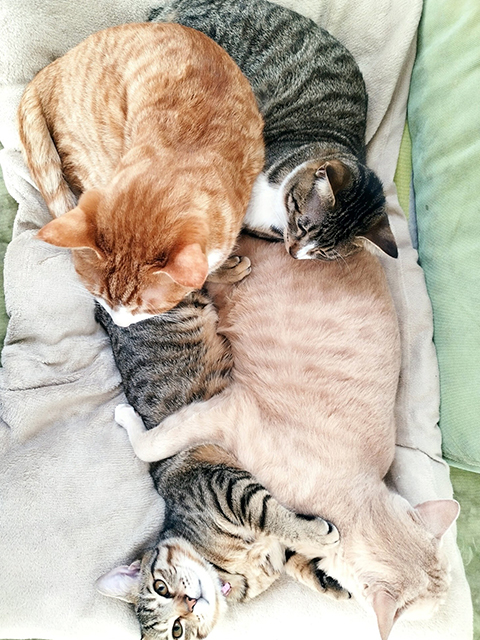 私の家では、犬1匹と猫4匹飼っています。猫が多いけど私は生涯犬派です!もちろん可愛い猫ちゃんのことも好きです。遥香先生はどっち派ですか?家の猫ちゃん達は普段はあまり仲が良くないですが、寒くなってくるとみんなでくっついて寝ることが多いです。冬のレアな光景です!