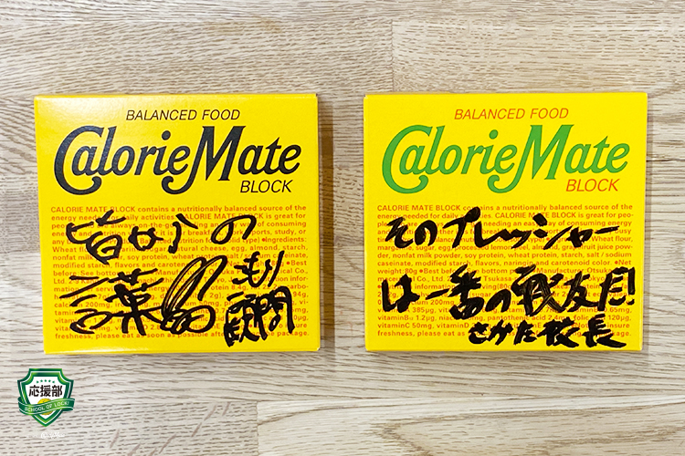 そして、“仲間と一緒に乗り越えて欲しい!”という想いを込めてカロリーメイトは多めに送るので、もし応援したい仲間がいたら、差し入れしてあげて欲しい! さらに、メッセージ入りのチェキも同封するぞ!