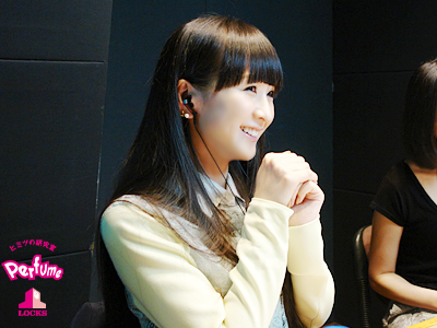 あ〜ちゃん「こちらは、私たちPerfumeも出演させてもらっていますカンロ『ピュレグミ』のCMソングになっています。」