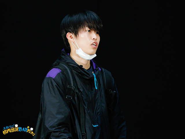 リュックを背負ったままラップをするヒップホップスタイルを踏襲し、あえてマスクも完全にとらないラフなスタイル。