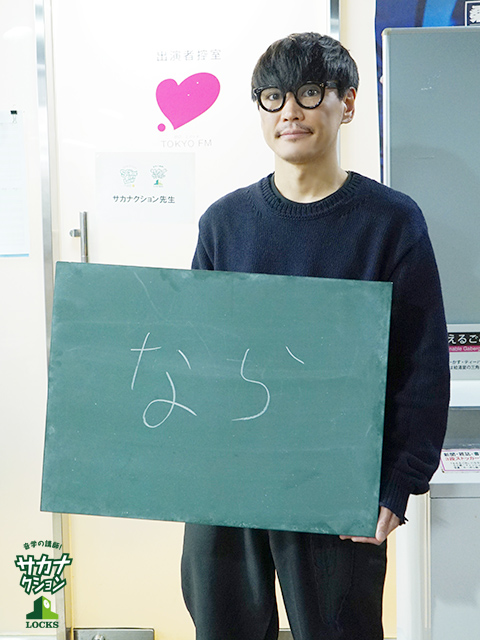 「(大きく息を吸って……)サカナクションの山口一郎です。さて、2012年4月より11年半続いたこのサカナLOCKS!でございますが、本日をもちまして終了いたします。最終回でございます。皆さんへのメッセージを黒板に書きまして、ここから立ち去ろうと思います!ふふふ(笑)。」