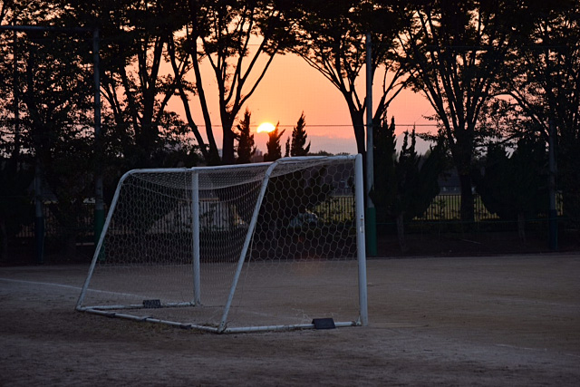 サッカー部引退試合の後の地元高校のグラウンドです。期待の太陽と不安の影。見るだけで涙が出てきます。