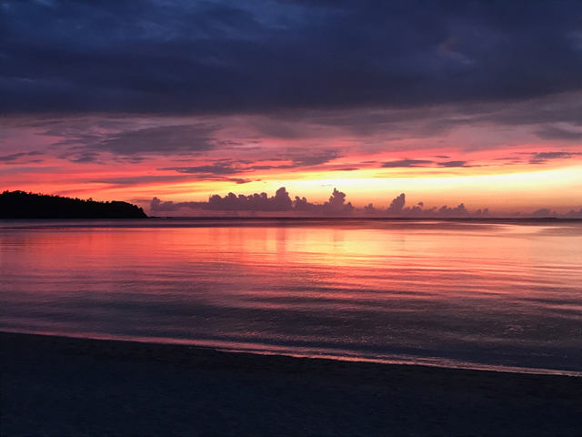 先日沖縄に行った時に撮った写真です。夕日が海に写っていて、すごく綺麗で感動してしまいました(^^♪