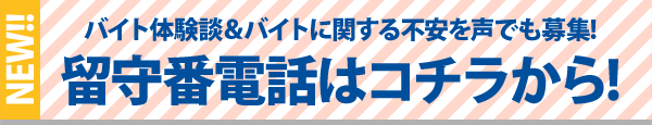現在、バイト部では生徒みんなからのバイト体験談&バイトに関する不安を留守番電話で受付中!