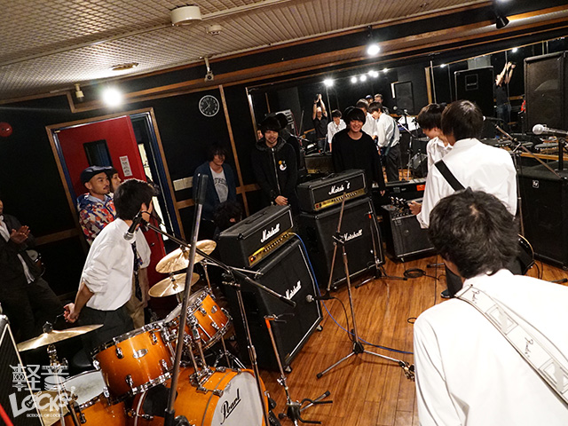 ドラムの堀内くんはすぐに気づき、にやける!笑
