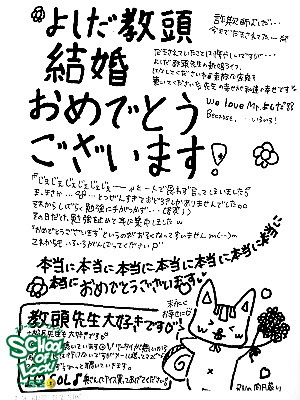 しかし!よしだ教頭の結婚報告を受け、急遽授業テーマを変更…!